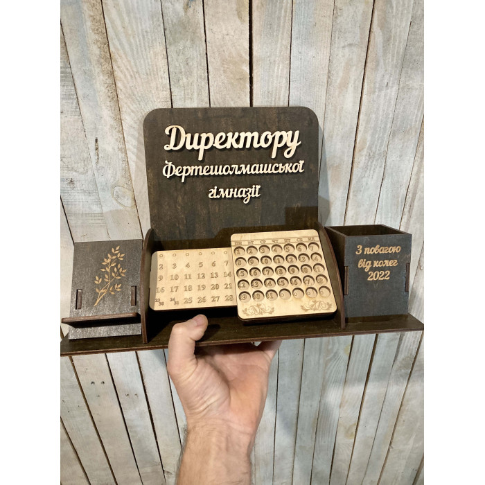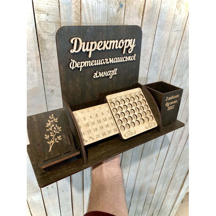 Іменний органайзер для директора школи / гімназії з вічним календарем HWD-OR010 — оригінальний подарунок з дерева