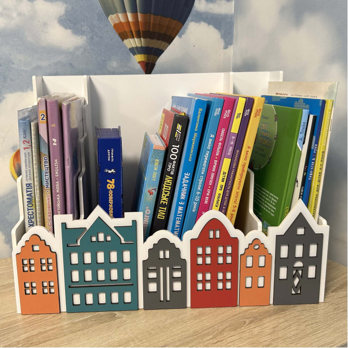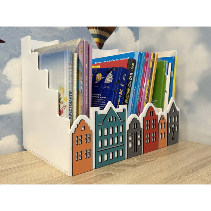 Органайзер для книжок і зошитів з голландськими будиночками HWD-OR011 — оригінальний подарунок з дерева
