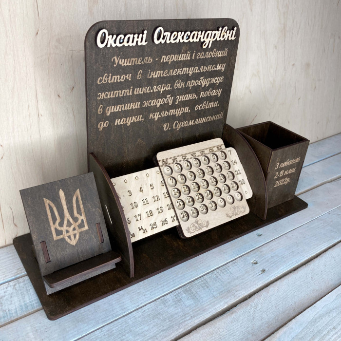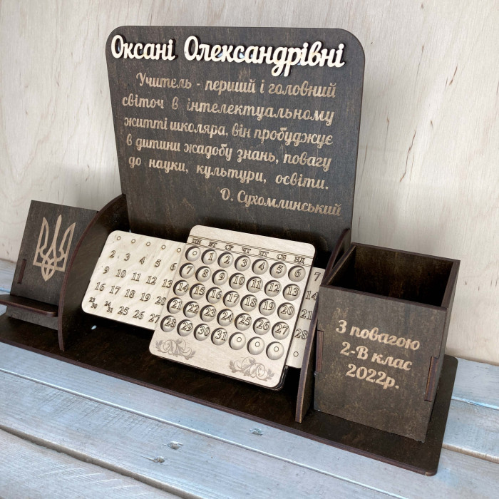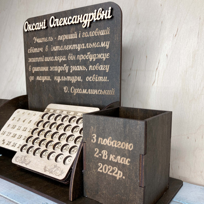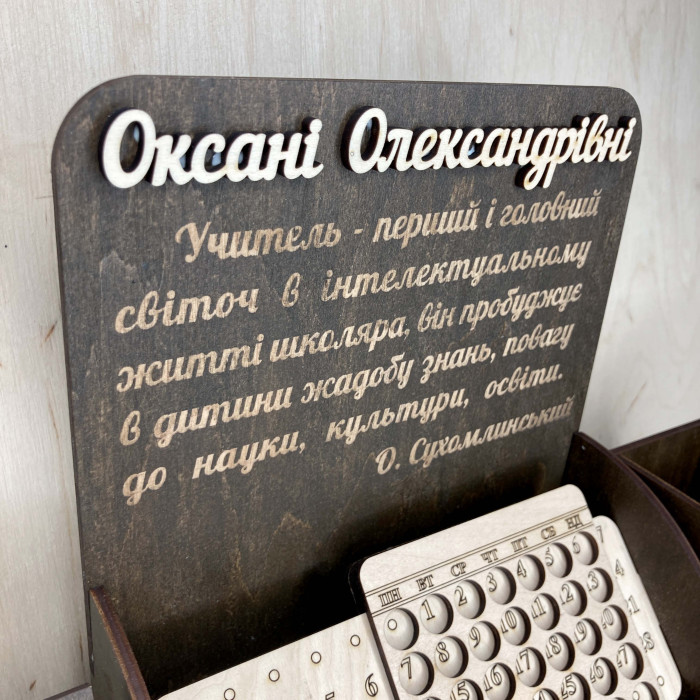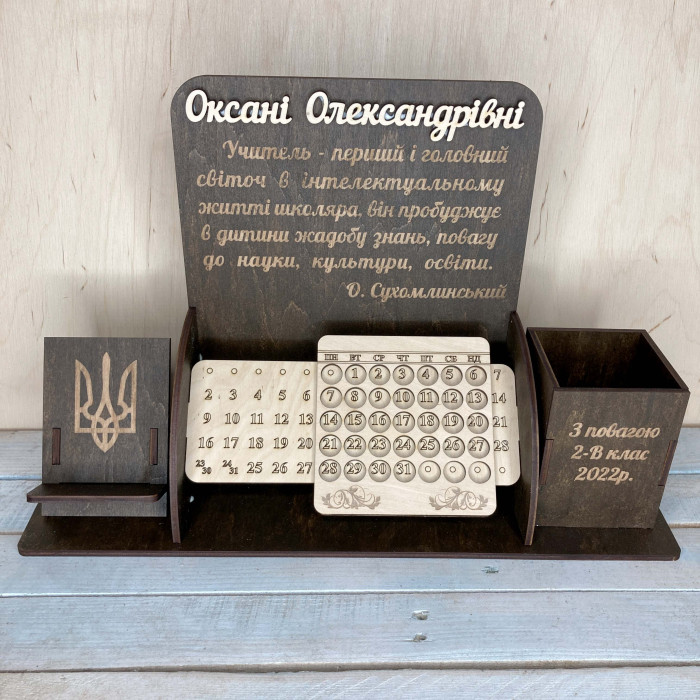 Іменний органайзер з дерева з календарем — подарунок вчителю HWD-OR005 — оригінальний подарунок з дерева