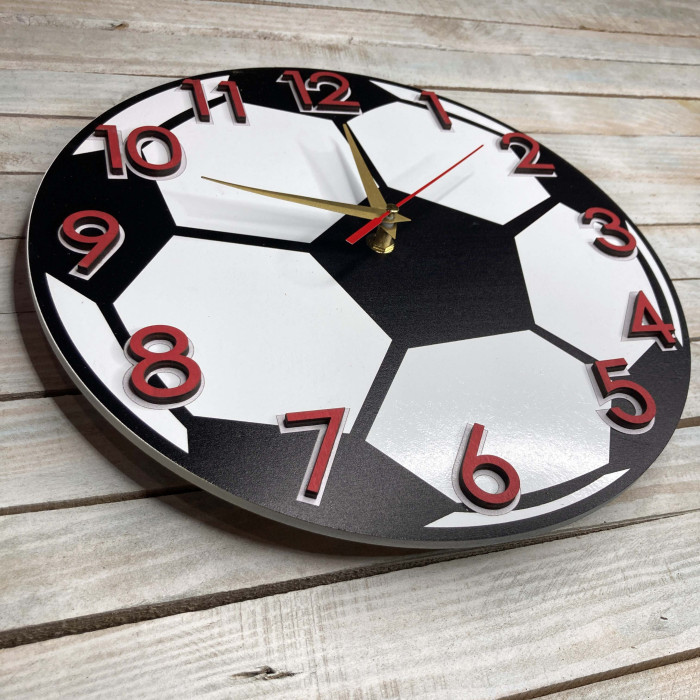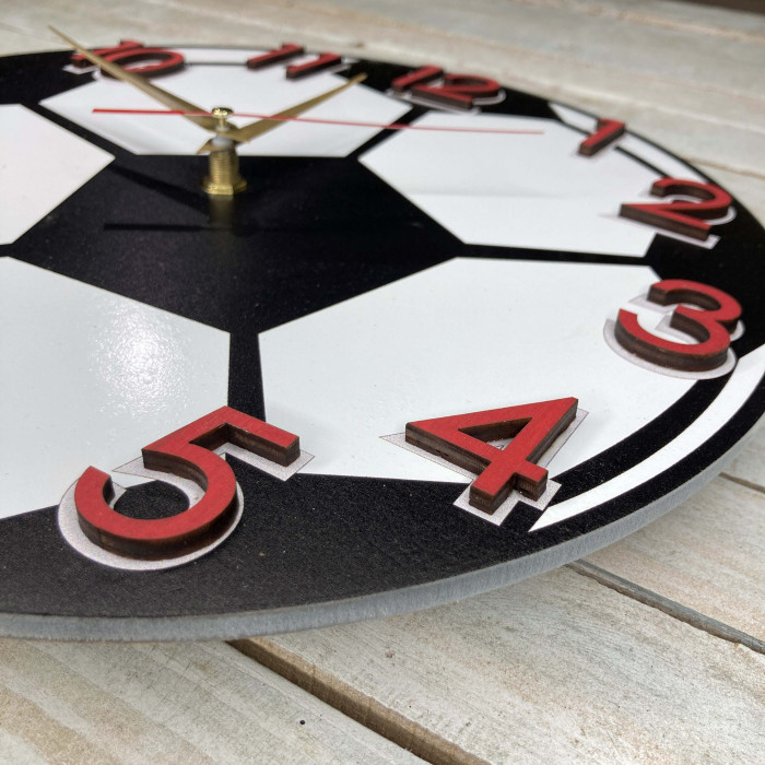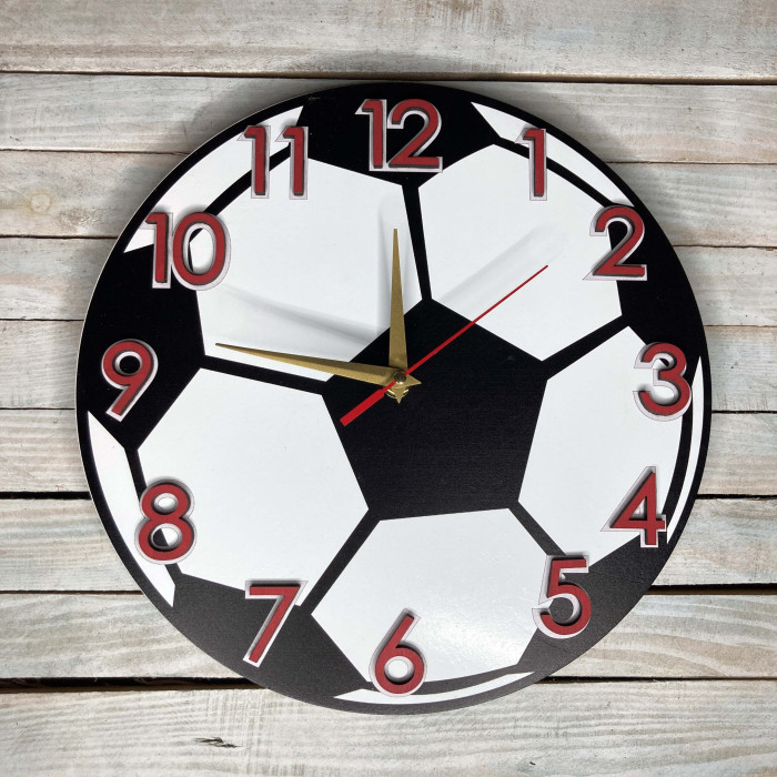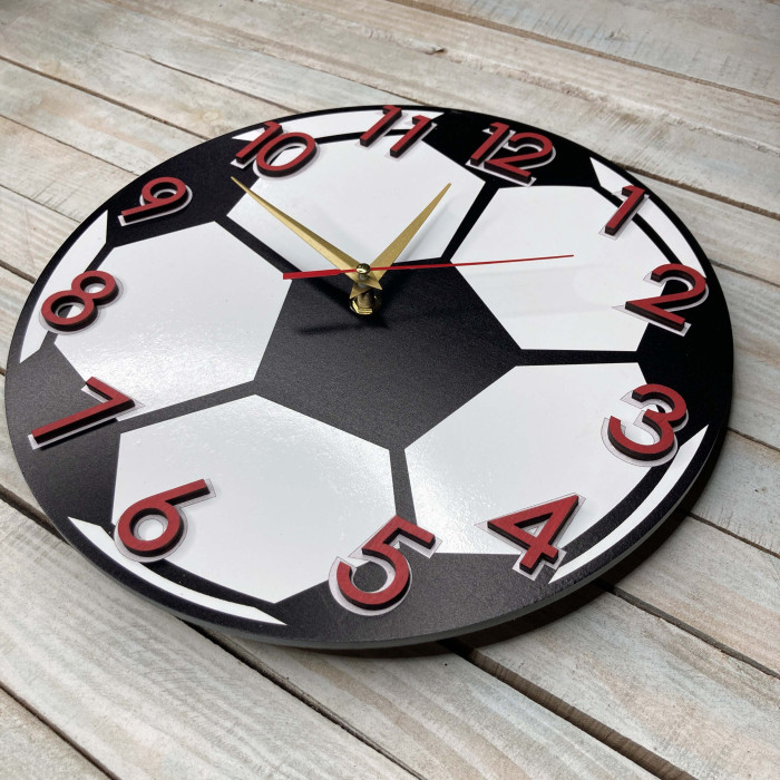 Часы настенные детские, часы футбольный мяч, подарок футболисту HWD-A0685 — оригинальный подарок из дерева
