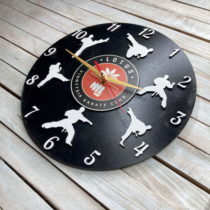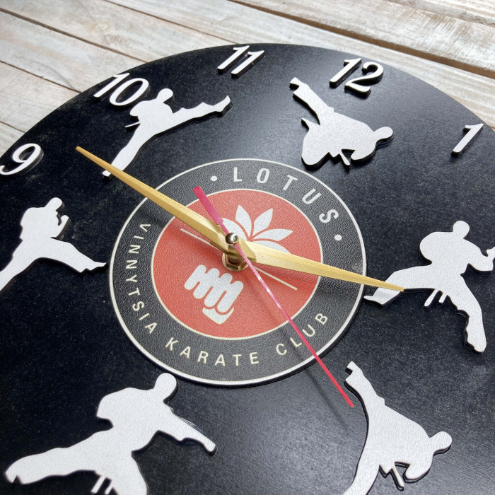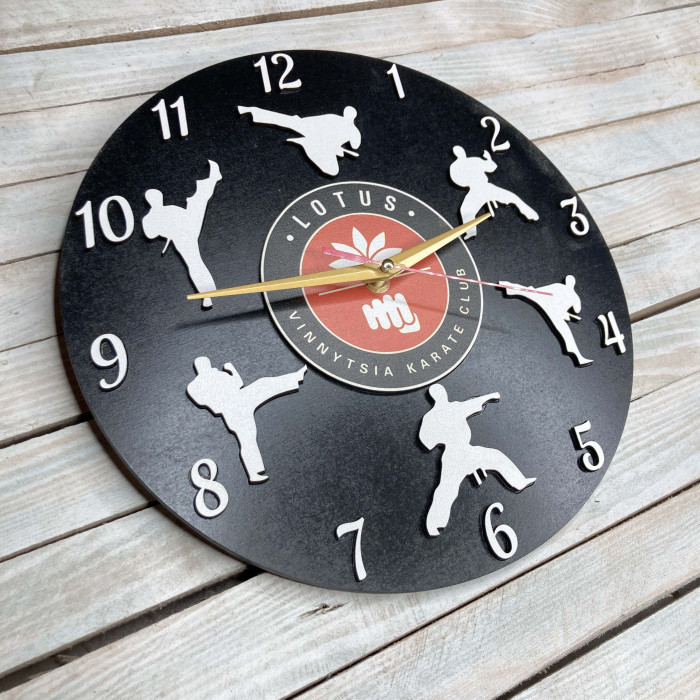 Настенные часы тренеру по карате - креативный подарок HWD-W046 — оригинальный подарок из дерева